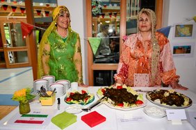 Viele Mitarbeitende aus verschiedenen Ländern haben Leckereien aus ihren Herkunftsländern gekocht und gebacken. Es fehlte an nichts: von Burek, Pitas, Piroska, Tsatsiki, Bananen aus Uganda über Salate und Kuchen aller Art reichte das Buffet.