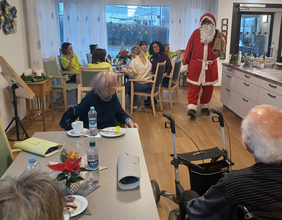 Um den Gästen der von der Samariterstiftung getragenen Einrichtung auch direkt eine Freude zu machen, hat der Weihnachtsmann das Alb-Hospiz besucht – mit Nüssen und Äpfeln im Rupfensack und einem Nikolausgedicht, vorgetragen aus seinem goldenen Buch.