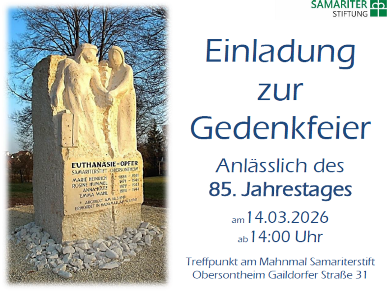 Am 14. März jährt sich zum 85. Mal das Unrecht der nationalsozialistischen Euthanasie-Morde an Bewohnerinnen und Bewohnern des Samariterstift Obersontheim.