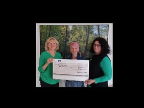 Foto: Angelika Leippert (von links) und Silke Kunz-Wernicke überreichten den Scheck an die Hausleitung Sabine Schelkle