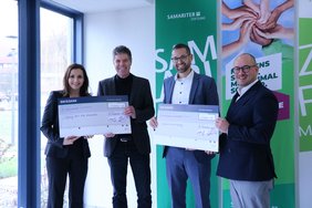 „Beide Projekte schenken den Menschen eine kleine Auszeit aus ihrem Alltag. Dazu trägt die BW-Bank gerne mit ihrer Spende bei“, sagt Adela Lentfer, Leiterin der Niederlassung Unternehmenskunden Göppingen/Filder bei der BW-Bank. Gemeinsam mit Simon Ness, Unternehmenskundenberater bei der BW-Bank, hat sie den symbolischen Spendenscheck an Hanspeter Brodbeck, Vorstandsvorsitzender der Samariterstiftung, und Andreas Schlegel, Geschäftsführer der Stiftung Zeit für Menschen, überreicht.